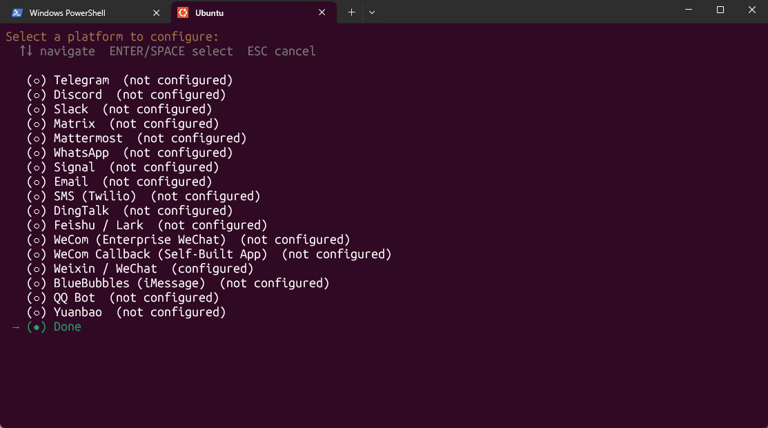 hermes gateway setup在终端输入 hermes gateway setup,根据引导接入即可。