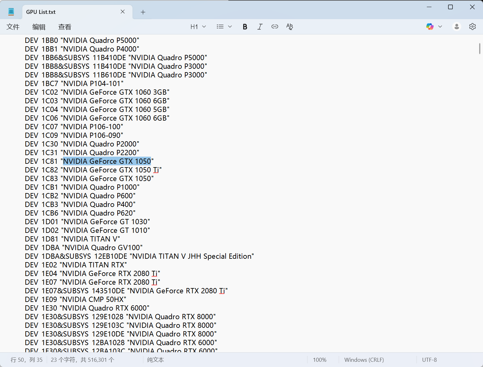 显卡序号是 1 就填写1,显卡名称填写需要修改的名称,比如要修改为 1050 就填写NVIDIA GeForce GTX 1050